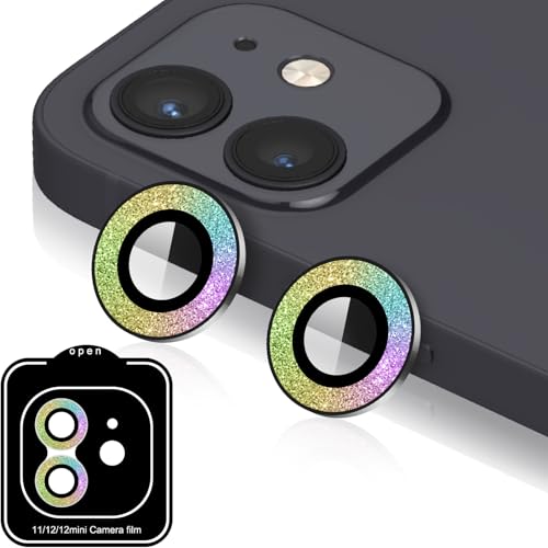 Beukei Protection Camera Glitter pour iPhone 11/12/12 Mini Verre Trempé, Protege Objectif Camera [Ultra HD][Dureté 9H][Anti Rayures] Titane Couleur