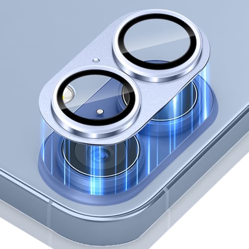 MiRowy Caméra Protecteur Compatible avec iPhone 13/iPhone 13 Mini, Verre Trempé Alliage D'aluminium Caméra Lentille Coque, 9H HD Protection écran Camera pour iPhone 13/iPhone 13 Mini, Bleu