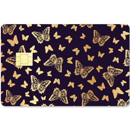 CREATCABIN Autocollant en Forme de Papillon Doré pour Carte de Crédit,Autocollant de Protection pour Carte Bancaire,Imperméable,Amovible,sans Bulle,Fin pour Carte de Transport,Noir,186x137mm