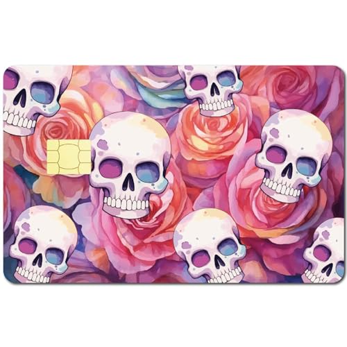 CREATCABIN Autocollant Peau Carte Rose Crâne Débit Carte Crédit Couvrant Squelette Personnalisant Décalcomanies Protection Carte Bancaire Étanche sans Bulle pour Carte-Clé Transport EBT 186x137mm