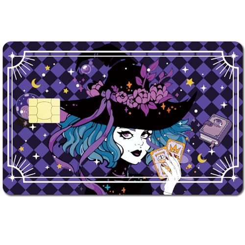CREATCABIN Autocollant Peau Carte Sorcière Tarot Débit Peaux Carte Crédit Couvrant Sorcellerie Personnalisation Autocollants Protection Carte Bancaire Imperméable Mince pour Carte Transport 186x137mm