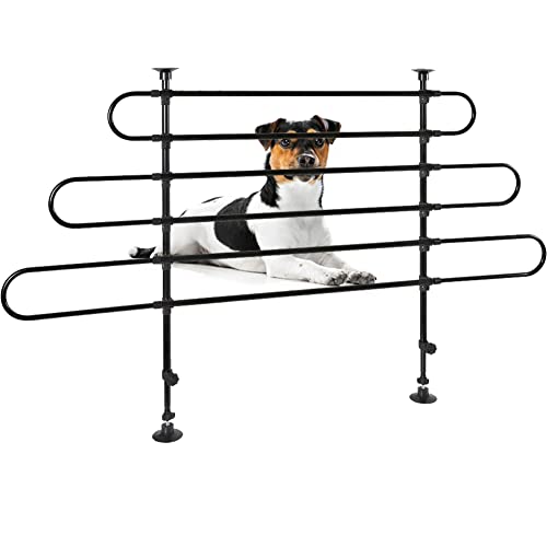 BAKAJI Grille de séparation de Voiture pour Chien Universelle avec Tige télescopique, Filet de Protection de Coffre pour Transport d'animaux, Fer réglable, barrière séparatrice (3 éléments)