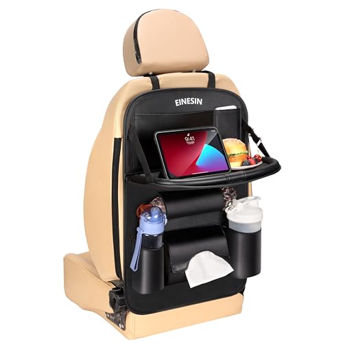 Einesin Organisateur Voiture avec Plateau pour tablette voiture siege arriere, Imperméabl Protection Siege Voiture Enfant avec table pliante, plusieurs poches Multifonction