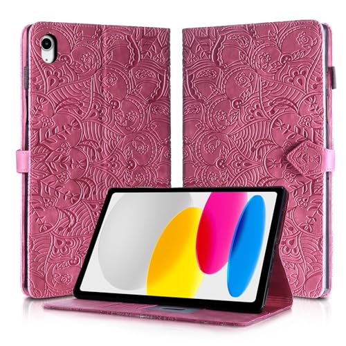 LORANKA-Coque iPad 10.Generation 2022 10,9 Pouces en Cuir PU Portefeuille Stand Support Etui Coque Protection Tablette für iPad 10.Generation 2022 10,9 Pouces Rose Rouge