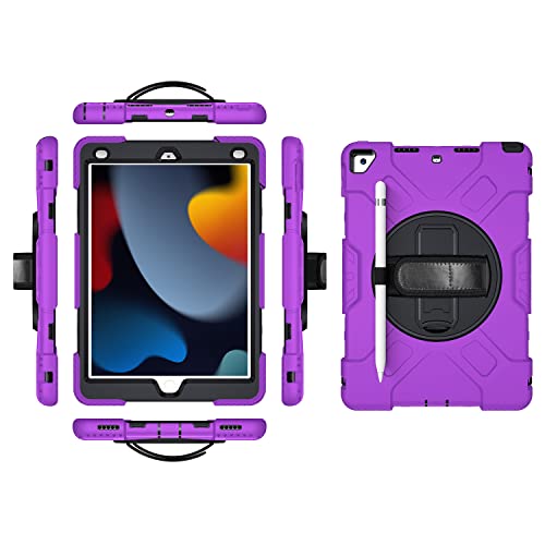 Étui de Protection pour iPad 10.2 2019/2020/2021 génération avec Film de Protection d'écran, Porte-Crayon, Support Rotatif à 360°, dragonne, béquille (Violet)