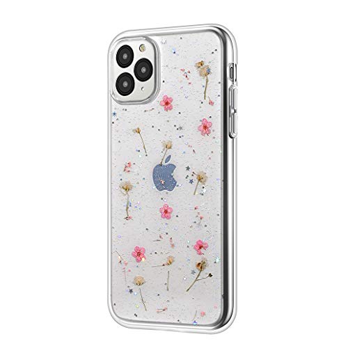 n a Emlivi Coque de protection pour iPhone 11 Pro - Motif fleurs séchées - Cristal - Silicone TPU - Bumper - Pour iPhone 11 Pro - Fleurs étoilées - Rose