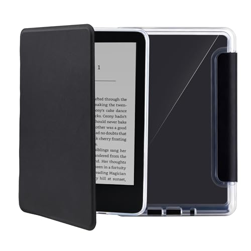 Housse Kindle 11e génération 2024/2022, Housse Transparente Souple 6 Pouces pour liseuse Kindle, Protection magnétique en PU avec Fonction Veille/réveil Automatique et Smart Cover (Noir)