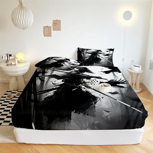 XCQHZYQ Drap Housse en Microfibre Samouraï, Antidérapants Résistant aux Rides 30 cm Drap Housse Matelas Epais Protection de Matelas 160x200 cm avec 2 Taie d'oreiller 65x65 cm