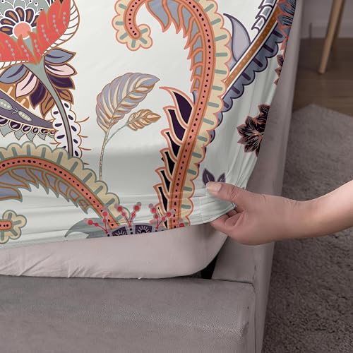 Treer Drap Housse en Microfibre Imprimé Cachemire Antidérapants Élastique Tout Autour, Bonnet 30cm Drap Housse Matelas Epais Protection de Matelas (Fleurs,160x200+30cm)