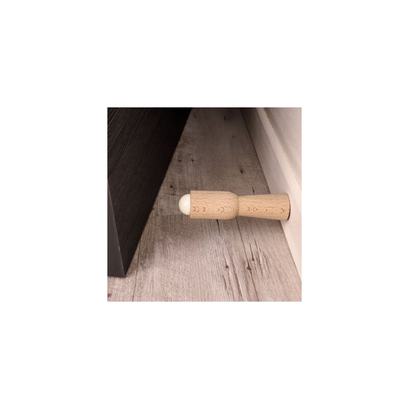 Ouvre&Deco – Butée de porte Diabolo en bois brut – Diamètre 29 mm – Hauteur 110 mm – Embout caoutchouc pour protection murale
