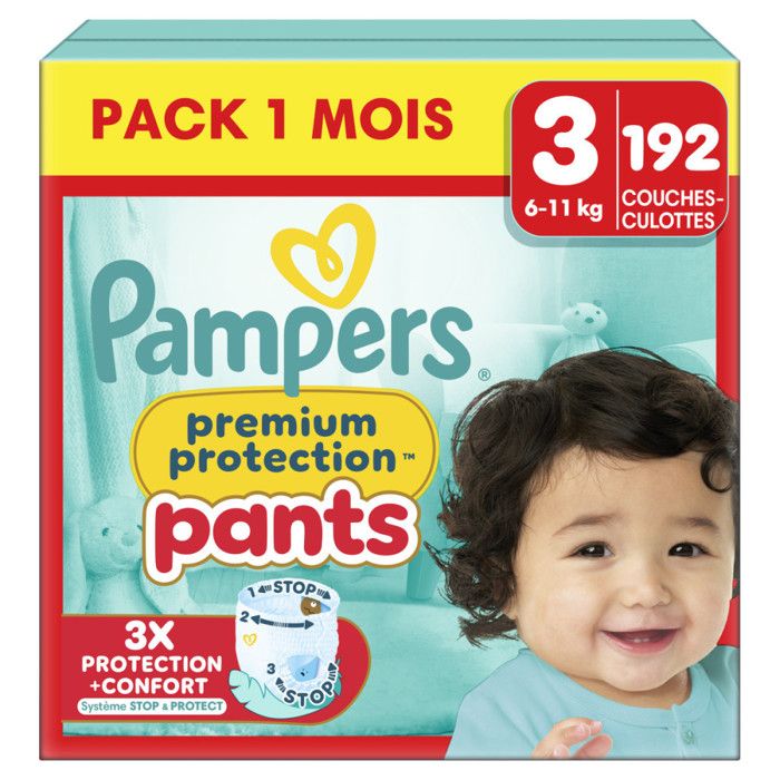 Pampers Premium Protection Pants Pack 1 Mois, Taille 3, 192 couches-culottes