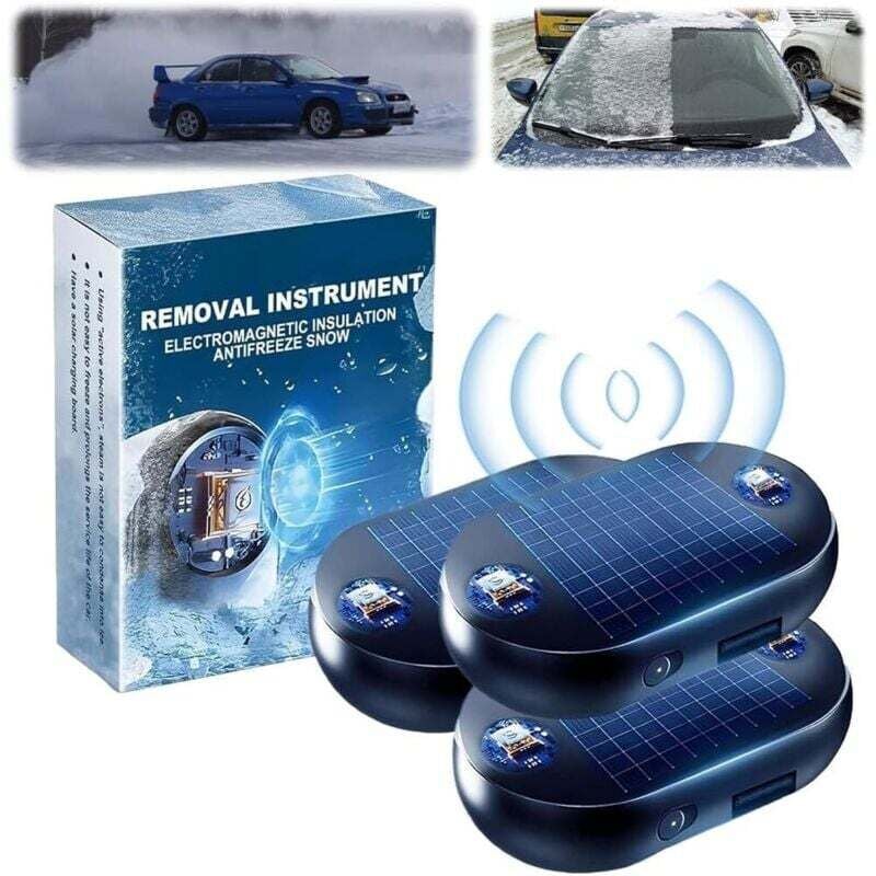 Lot de 3 dégivreurs de pare-brise électromagnétiques pour voiture - Chargement solaire + USB - Chauffage micro-ondes - Protection contre le gel