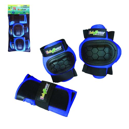 Sport1 Babyboom Ensemble de Protections pour vélo, Skateboard, Rollers, Trottinette, Poignets, coudières et genouillères réglables - Protection Genou, coude, Poignet - Taille M pour 25-50 kg - Bleu.