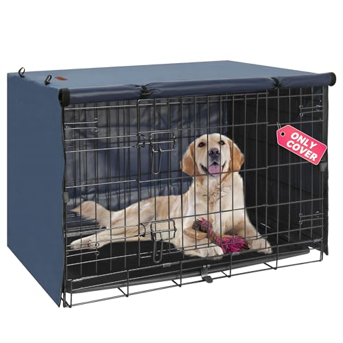 Seiyierr Housse de Cage pour Chien – Housse de Niche pour Cage de Chien de 91,4 cm, Double Porte en Polyester pour Cage métallique pour Chiot – Protection intérieure et extérieure – Bleu