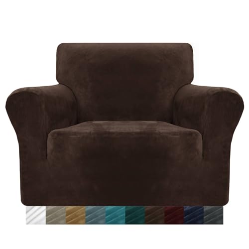 MAXIJIN Housses de Chaise en Velours pour fauteuils Housse de canapé Extensible antidérapante 1 Place Chiens Salon 1 pièce Housse de Protection pour canapé (1 Place, Café Foncé)