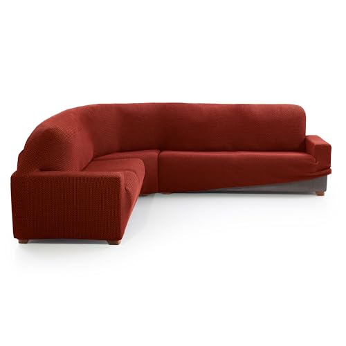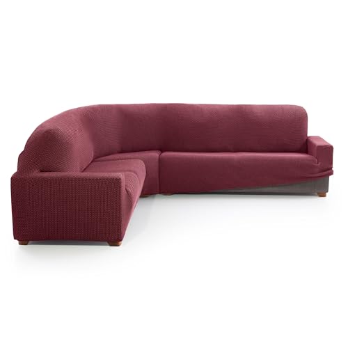 MAXIFUNDAS FUNDAS DE SOFA & CHAISE LONGUE. Housse de canapé d'angle Relive Couleur Rouge. Housse de Protection Super élastique pour canapé d'angle.