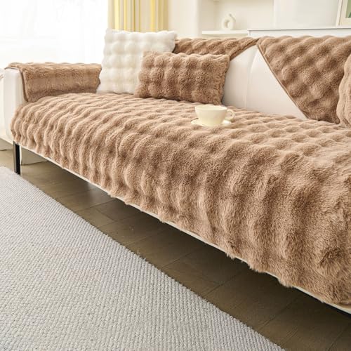 Housse de coussin de canapé en peluche douce et épaisse, antidérapante, 1, 2 ou 3 places, en fausse fourrure duveteuse, protection pour canapé d’angle de salon (gris foncé, 70 x 210 cm)