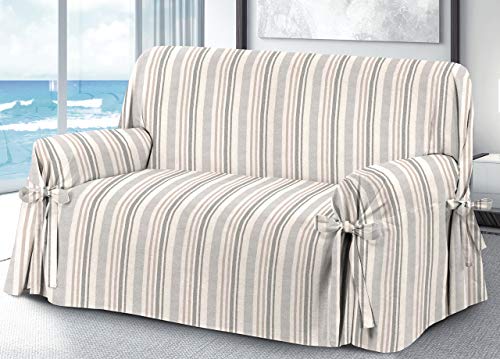 BIANCHERIAWEB Housse de canapé avec Lacets, nœud et Housse de Protection pour canapé, 2 Places, Couleur grancasa Beige