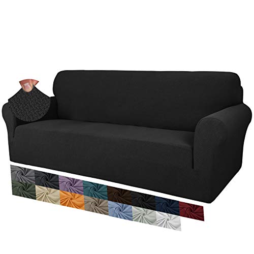 MAXIJIN Creative Jacquard Housse de canapé 3 Places, Super Extensible, antidérapante, adaptée aux Animaux domestiques, 1 pièce élastique de Protection pour canapé (3 Places, Noir)