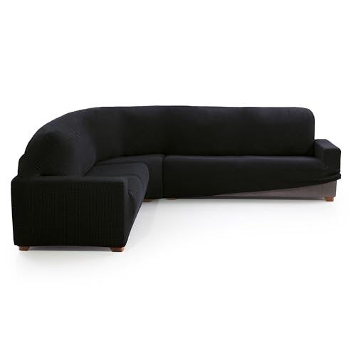 MAXIFUNDAS FUNDAS DE SOFA & CHAISE LONGUE. Housse de canapé d'angle Relive de Couleur Noire. Housse de Protection Super élastique pour canapé d'angle.