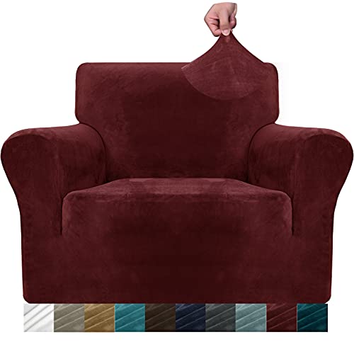 MAXIJIN Housses de Chaise en Velours pour fauteuils Housse de canapé Extensible antidérapante 1 Place Chiens Salon 1 pièce Housse de Protection pour canapé (1 Place, Rouge Vin)