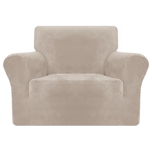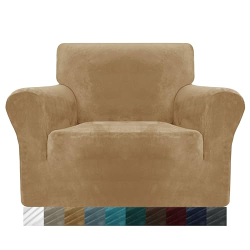 MAXIJIN Housses de Chaise en Velours pour fauteuils Housse de canapé Extensible antidérapante 1 Place Chiens Salon 1 pièce Housse de Protection pour canapé (1 Place, Camel)