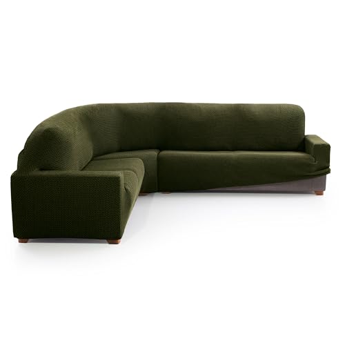 MAXIFUNDAS FUNDAS DE SOFA & CHAISE LONGUE. Housse de canapé d'angle Relive Couleur Gazon. Housse de Protection Super élastique pour canapé d'angle, Vert Herbe