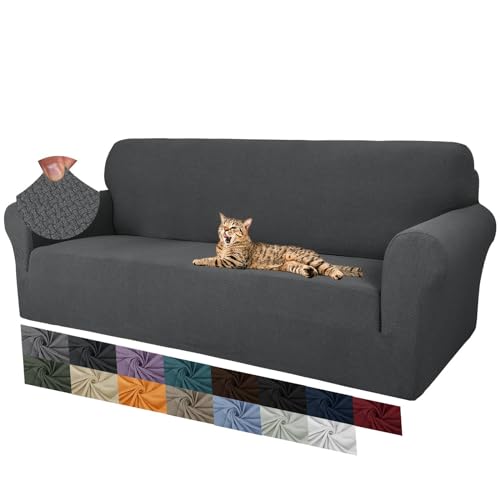 MAXIJIN Creative Jacquard Housse de canapé 3 Places, Super Extensible, antidérapante, adaptée aux Animaux domestiques, 1 pièce élastique de Protection pour canapé (3 Places, Gris Foncé)
