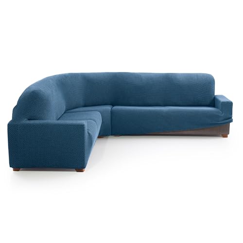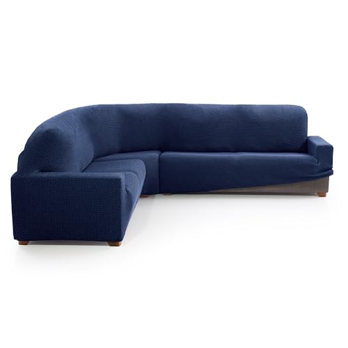MAXIFUNDAS FUNDAS DE SOFA & CHAISE LONGUE. Housse de canapé d'angle Relive Couleur Marine. Housse de Protection Super élastique pour canapé d'angle.