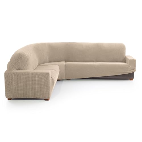 MAXIFUNDAS FUNDAS DE SOFA & CHAISE LONGUE. Housse de canapé d'angle Relive Couleur Beige. Housse de Protection Super élastique pour canapé d'angle.