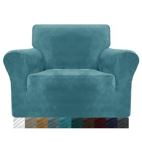 MAXIJIN Housses de Chaise en Velours pour fauteuils Housse de canapé Extensible antidérapante 1 Place Chiens Salon 1 pièce Housse de Protection pour canapé (1 Place, Bleu Paon)