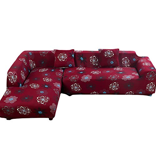 JIAN YA NA L Forme Extensible Canapé Covers Polyester Tissu Stretch Slipcovers + 2pcs Coussin Polyester Spandex Housse Housse de Protection pour Canapé Canapé Fleur Rouge