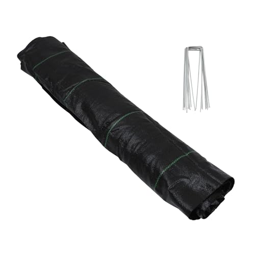 DOITOOL Toile de Paillage Tissu Tissé PP avec Piquets de Fixation pour Jardin Prévention des Mauvaises Plantes Résistante Aux UV Protection Sol pour Potager et Aménagement Paysager