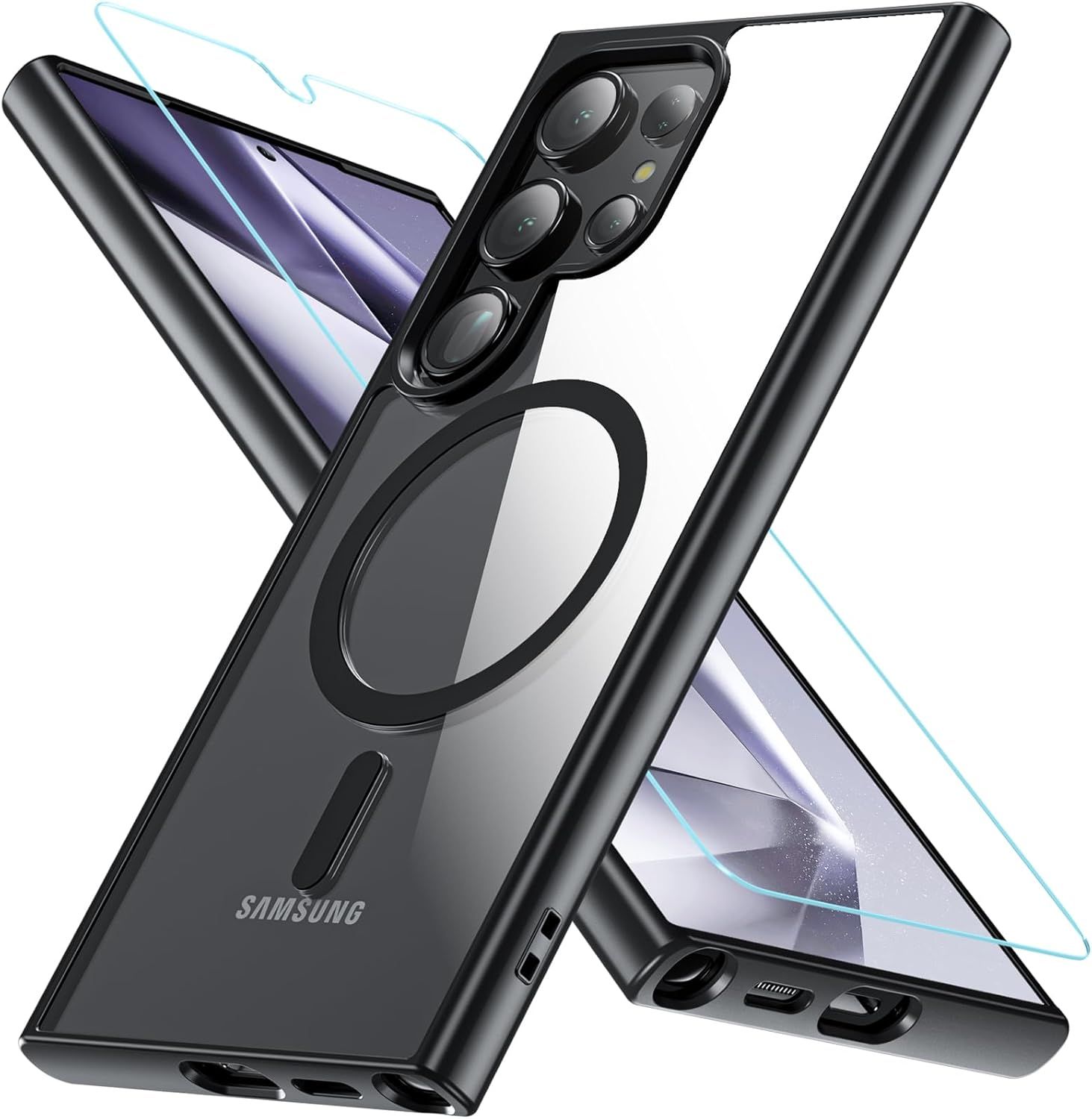 JGD-Coque pour Samsung Galaxy S24 Ultra 5G, Compatible avec MagSafe avec Verre Trempé, Magnétique Protection Samsung S24 Ultra Étui Arrière Housse Fine Antichoc Case pour S24 Ultra,Noir
