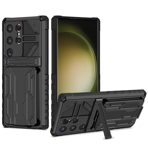 YOUULAR Coque Armor Card pour Samsung Galaxy S24 Ultra Rigide PC + TPU Souple + Support + Coque pour Carte Coque de Téléphone Antichoc Anti-chute Housse de Protection Samsung S24 Ultra Militaire