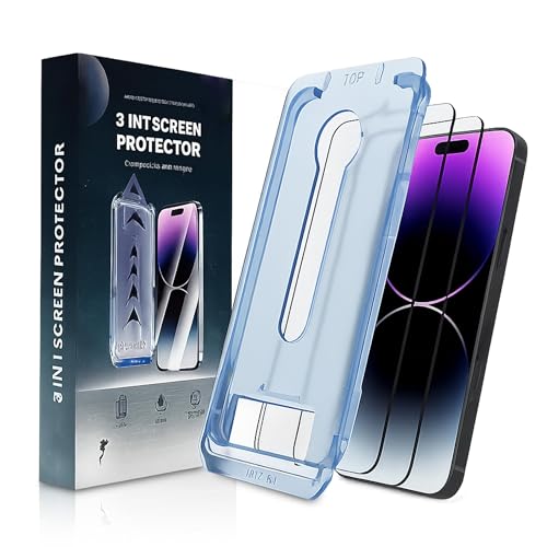Générique Evotech Screen Protector, 2 Packs Evo Tech 3 in 1 Screen Protector for iPhone,Anti-Scratch Anti-Fingerprint Privacy & Auto Dust-Free Install (2 Pack * Mix,14 Pro Max)