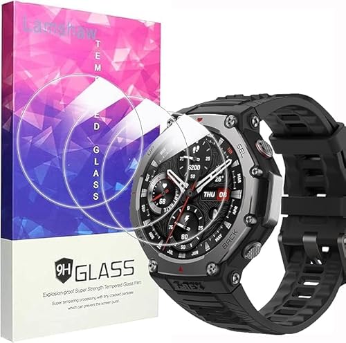 Lamshaw 3 Pièces Protection Écran pour Amazfit T-Rex 3 48mm Smartwatch Screen Protector,Protecteur D'écran Verre Trempé pour Amazfit T-Rex 3 48mm Smart Watch. (3 Packs)
