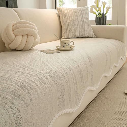 FASCINATDECO Housses de Coussin de Siège de Canapé, Housse Coussin Canapé en Chenille Extensible, Housse Assise Canapé, Protege Canape, Housse Canapé d'angle Antidérapante (Beige,3 Places)