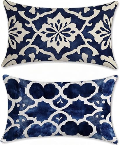 Housse Coussin Exterieur Impermeable Bleu Marine Protege Oreiller 30x50cm Lin Lot de 2 Abstrait Housse Assise Salon de Jardin Coussins Exterieures Imperméable Coussin Canapé Taies d'oreillers u-9464