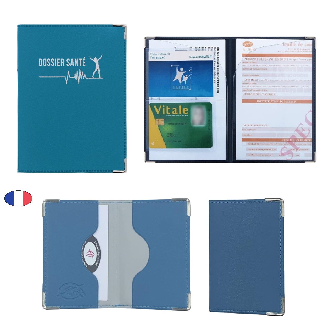 Lot étui Porte ordonnances + protège 2 Carte bancaire Anti piratage bleu France