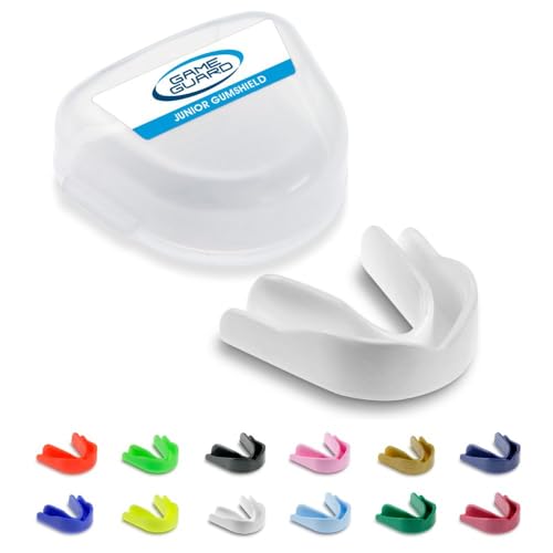 GAME GUARD - Protège-dents pour la boxe, le rugby, le hockey, le karaté, le taekwondo/protège dent pour enfant, junior de 8, 9, 10, 11, 12 ans. Approuvé CE - Protège leurs dents et leurs (Blanc)