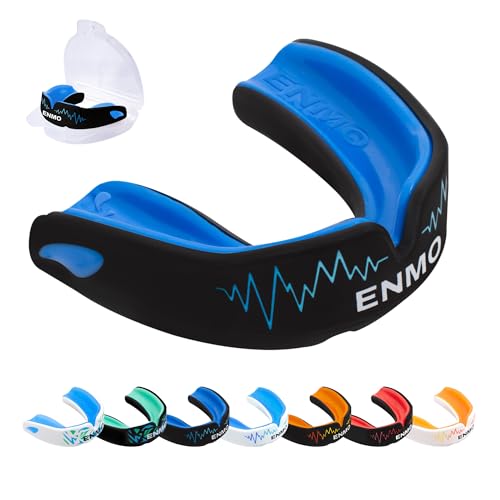 Enmo Maxilla - Protège-dents en gel avec étui - Pour adultes et enfants à partir de 10 ans - Technologie Breathing Channel - Boil and Bite - Confortable - Antimicrobien - Pour tous les sports de