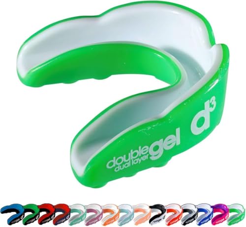 d3 Protège-dents Sport [Double Couche Gel Taille Pour Adultes 12+] Protection Bouche Dents pour Sport de Contact Boxe MMA Kickboxing Muay Thai Rugby Arts Martiaux | Étui hygiénique (Vert/Blanc)