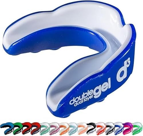 d3 Protège-dents Sport [Double Couche Gel Taille Pour Adultes 12+] Protection Bouche Dents pour Sport de Contact Boxe MMA Kickboxing Muay Thai Rugby Arts Martiaux | Étui hygiénique (Bleu/Blanc)