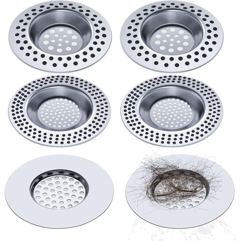 Realure Lot de 6 Pcs Filtre evier Cuisine avec Filtre Lavabo Salle de Bain, Filtre évier Cuisine, Filtre Cheveux Douche, Grille evier Cuisine, Protege evier Cuisine, Métal (3 Tailles)