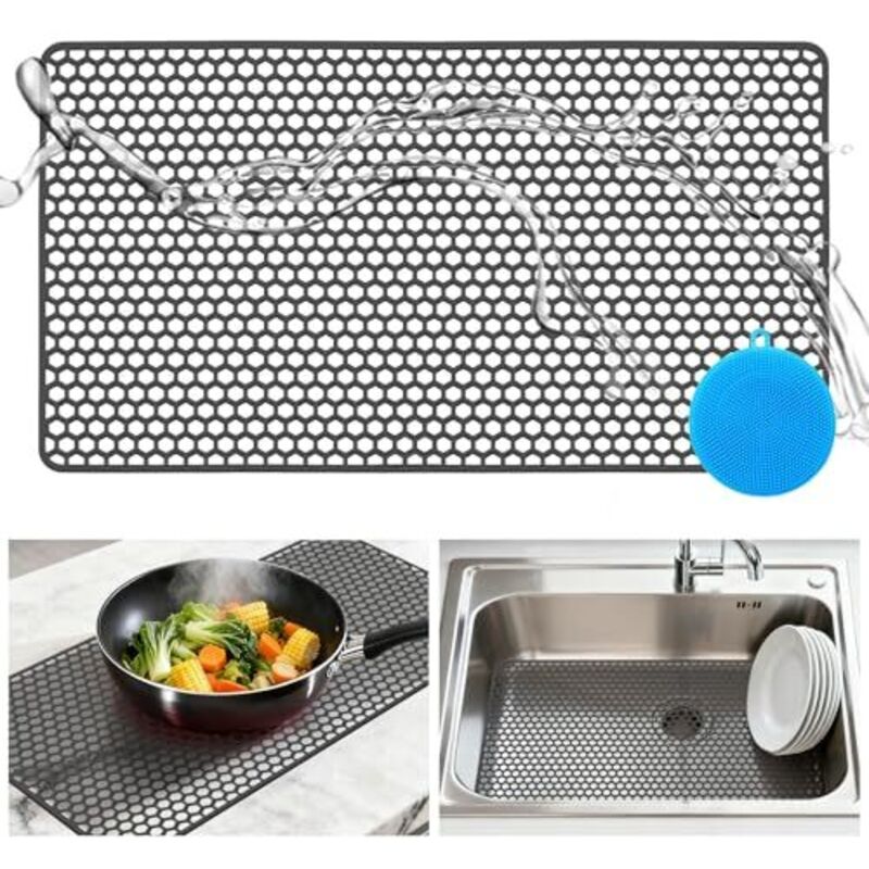 Tapis Fond Evier Protege Evier Cuisine DécoupablePliable Antidérapants, Tapis de Protection en Nid d’Abeille pour Évier de Cuisine, Résistant à la Chaleur, Non Toxique, pour Vaisselle et Fruits