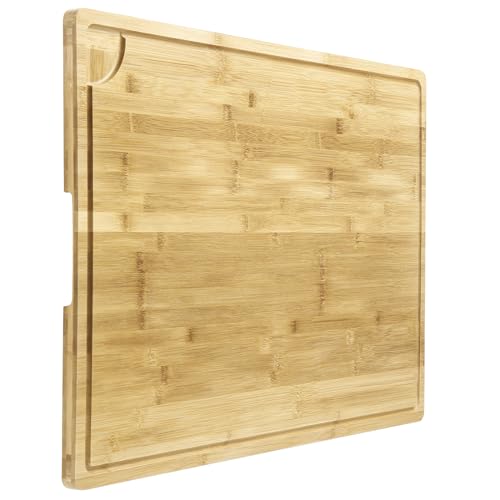 Garvee Planche à Découper En Bambou XXL 76x51 Cm - Planche à Viande Avec Saignoire Et Poignées, Planche à Pâtes Sur Évier, Protège-Plaque - Multifonction Pour Cuisine