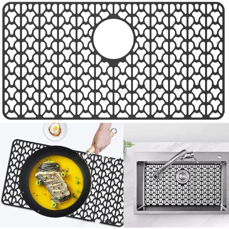 DabbOo Tapis Fond Evier Protege Evier Cuisine Découpable Pliable Antidérapants Sink Mat Tapis de Protection en Silicone pour Tapis évier de Cuisine en Nid d'abeille pour Fond D'évier de Cuisine(Noir)
