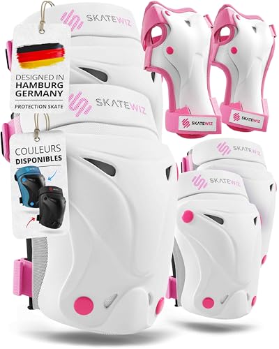SKATEWIZ Protection Adulte et Protections Roller Enfant Garcon - Protection Skate Adulte - Protege Genoux Skateboard - Trotinette Freestyle, Patin a Roulette Fille - Impact M - Adolescents Rose Blanc