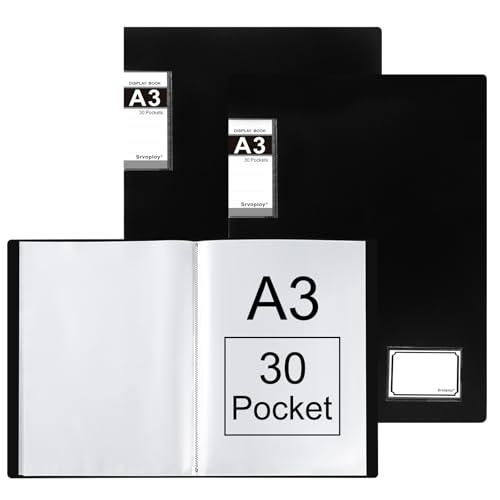 Srvnpioy 2 Pièces Porte-Vues A3 40 Pochettes 80 vues, Livre D'affichage, Présentation Affichage du Livre A3 Protège-Documents, en Polypropylène,Noir
